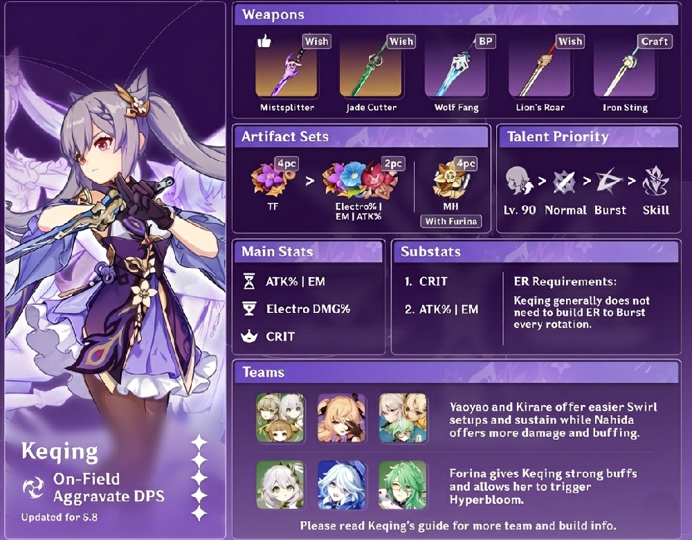 While this guide focuses on the most optimal strategies and builds, it is important to remember that Keqing is fully functional even without perfect min-maxing. If you are already clearing content comfortably, don't feel pressured to follow this guide strictly—the most important thing is to play the game the way you enjoy it most!