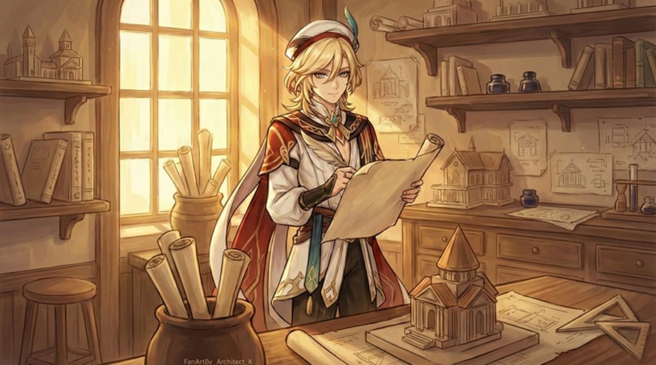 Kaveh is the renowned architect behind the Palace of Alcazarzaray and Alhaitham's roommate. Armed with his automated briefcase Mehrak, he specializes in the Bloom reaction. Unlike other characters, Kaveh can instantly rupture Dendro Cores and heal himself when damaged by them, making him the perfect on-field driver for Bloom teams.